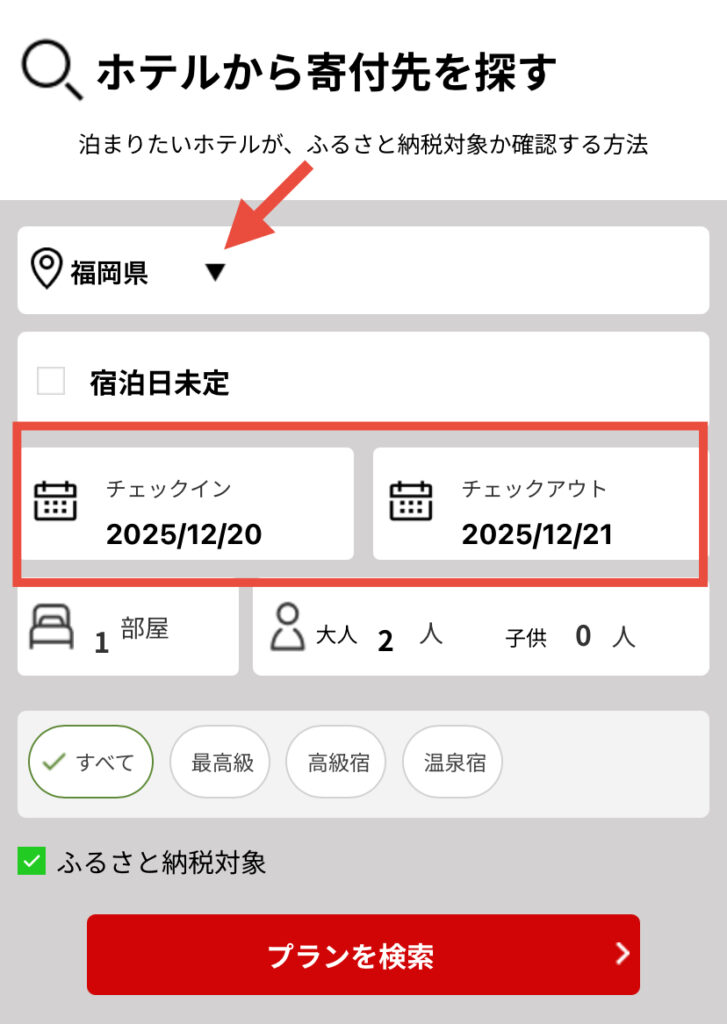 1: 楽天トラベルの「ふるさと納税」にアクセス