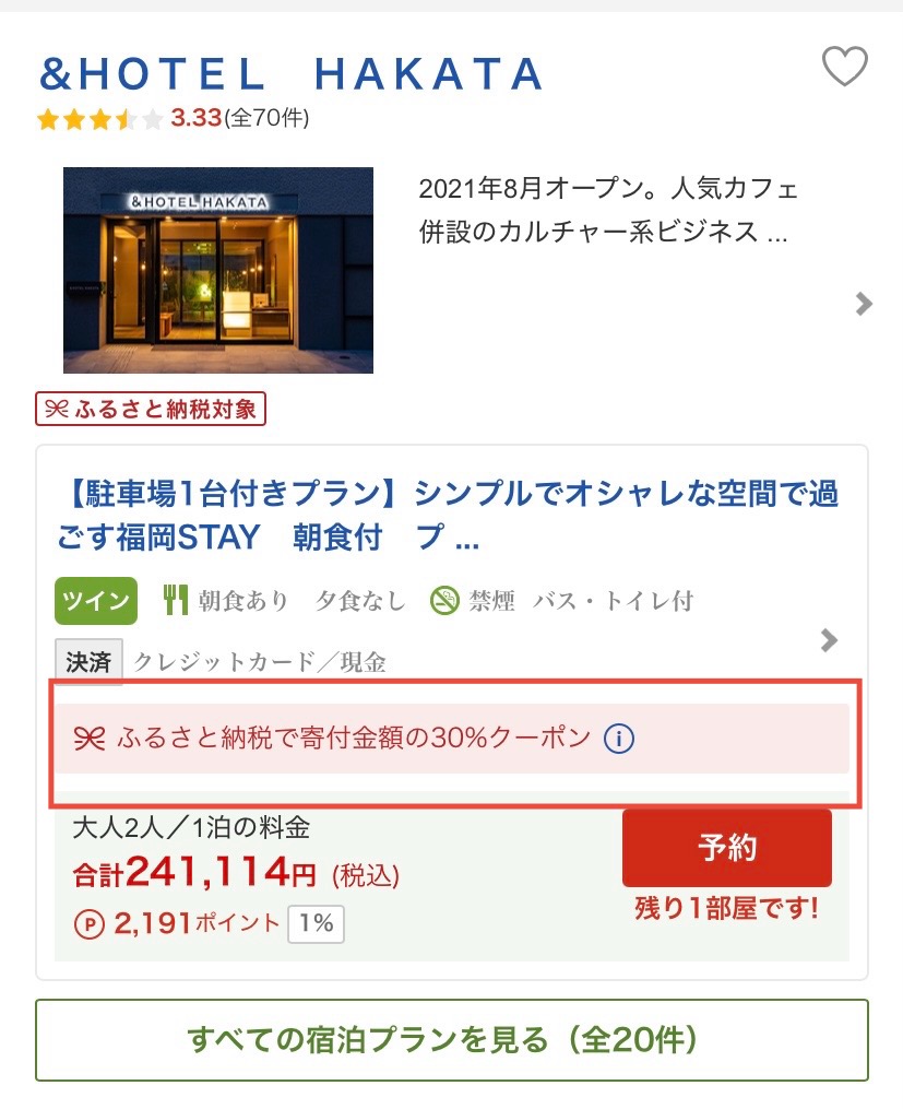 「&HOTEL HAKATA」にお得に泊まりたい方は、ふるさと納税の宿泊クーポンを活用するのがおすすめです。
