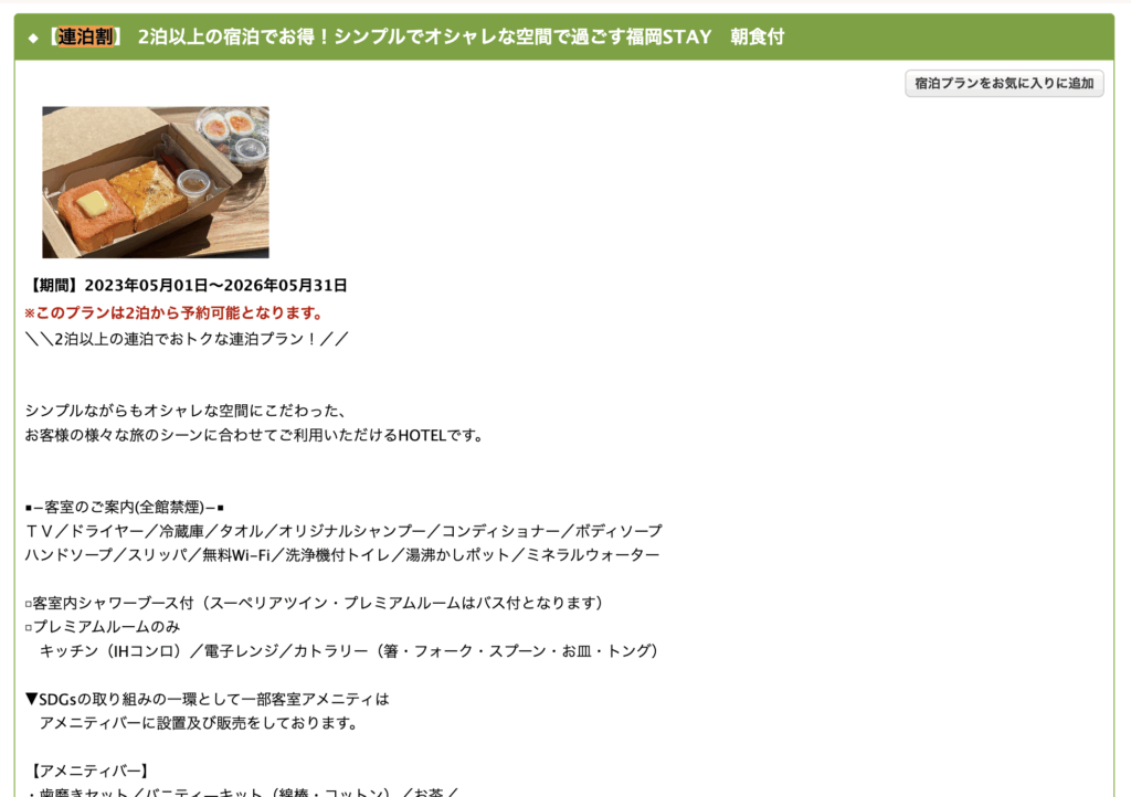 • 予約前に「朝食付き」「連泊割」などの絞り込み条件を利用