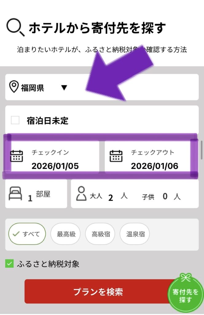 2: 福岡県で絞り該当のホテルを探す