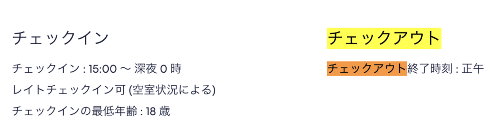 アーリーチェックインやレイトチェックアウトの「確定した時間」や「追加料金」が公式サイトに明記されていません。
