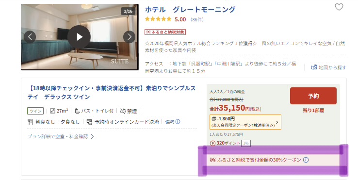 ふるさと納税の「宿泊クーポン」は旅行好きにとって最高クラスにコスパの良い返礼品と言えるでしょう。