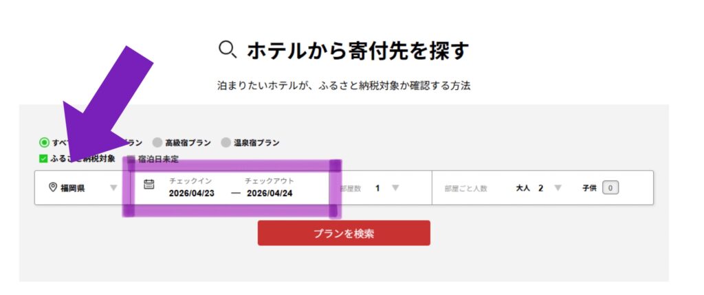 2.福岡県で絞り該当のホテルを探す