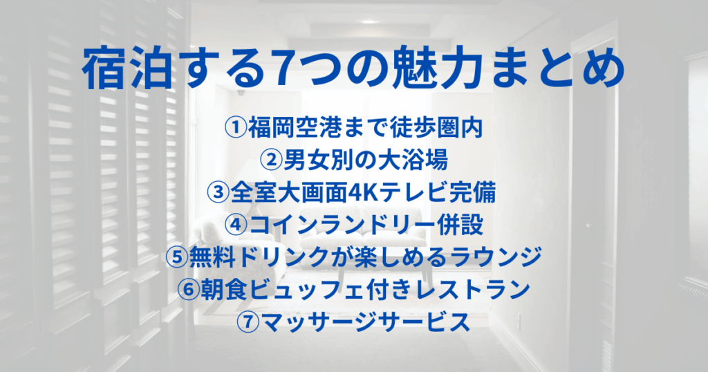 初めてホテルフロント・イン福岡空港を利用する方は、事前に気になる点が多いかと思います。