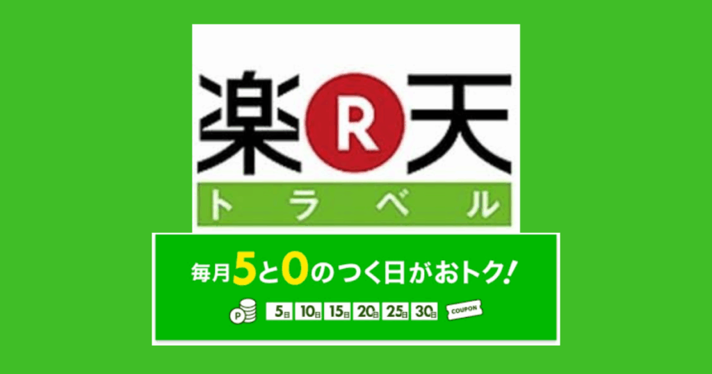 楽天トラベルで「5と0のつく日(5日・10日・15日・20日・25日・30日)」に予約をすると、お得なクーポンやポイントがたくさん付与される特典があります。