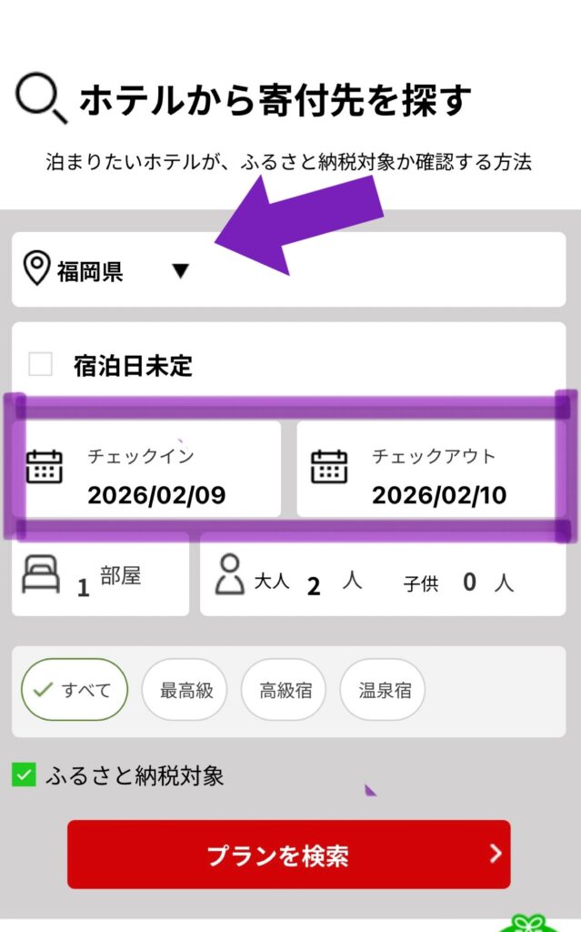 1: 楽天トラベルの「ふるさと納税」にアクセス