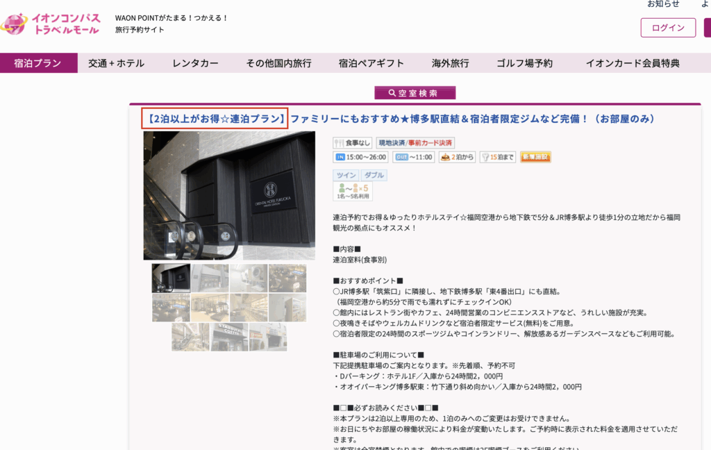 当該ホテルは、連泊プランが楽天やじゃらんで表示されないケースが多く、外部サイトでのみ見つかることもあります。