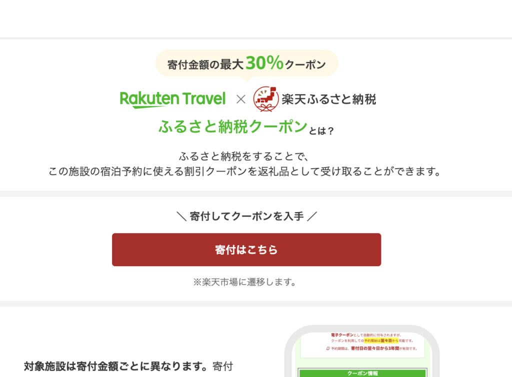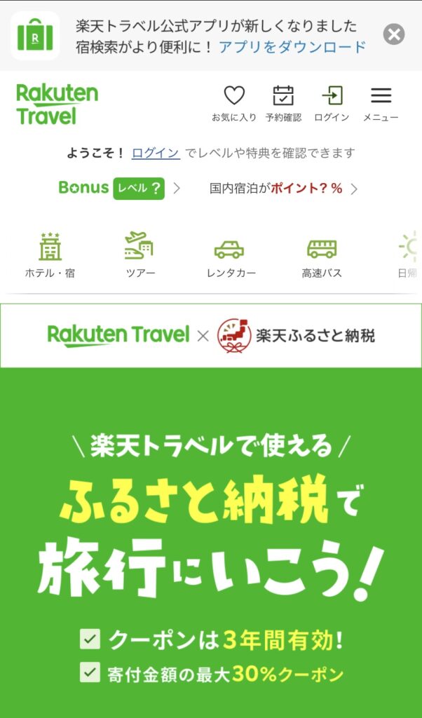 - 楽天トラベルで「ふるさと納税」にアクセス