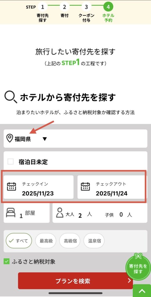 2:福岡県で絞り該当のホテルを探す