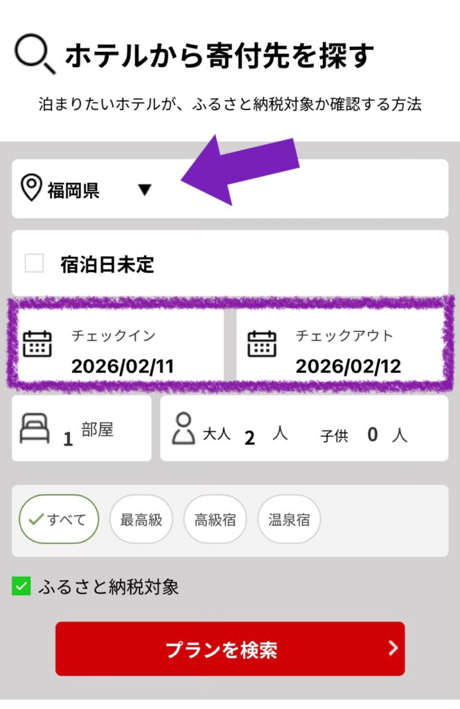 2. 福岡県で絞り該当のホテルを探す