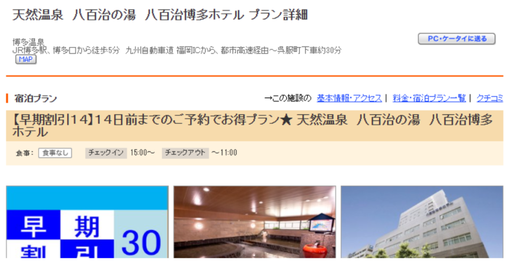 天然温泉 八百治の湯 八百治博多ホテルに安く泊まる時の注意点